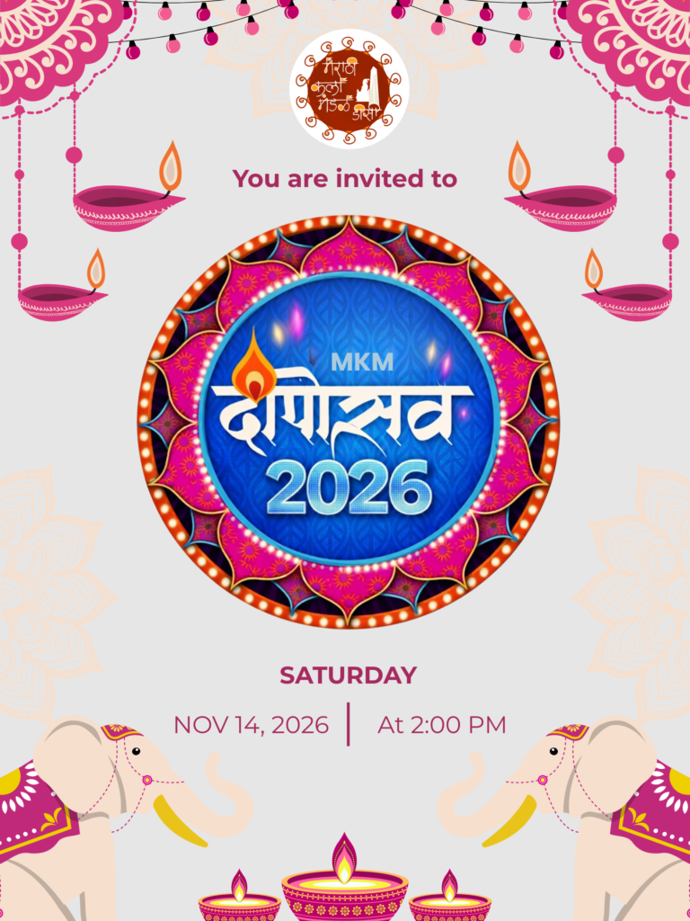 Marathi Kala Mandal Washington DC is excited to present Deepotsav 2026, a grand celebration of the festival of lights bringing together our community to honor tradition, culture, and togetherness. The program will feature vibrant cultural performances, festive décor with traditional diyas, music, dance, and delicious food that reflect the richness of Indian heritage. Families and friends will gather to celebrate Diwali in a joyful and welcoming atmosphere filled with light, positivity, and community spirit.