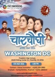 महाराष्ट्र दिन निमित्त मराठी कला मंडळ, ग्रेटर वॉशिंग्टन डी.सी. आणि Five Dimensions घेऊन येत आहेत, उत्कृष्ट मराठी नाटक चारचौघी!!